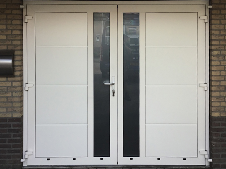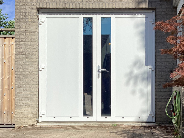 Daarna de nieuwe dubbele deur op een perfecte manier geplaatst.