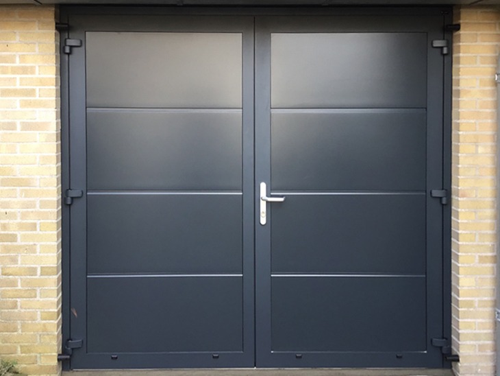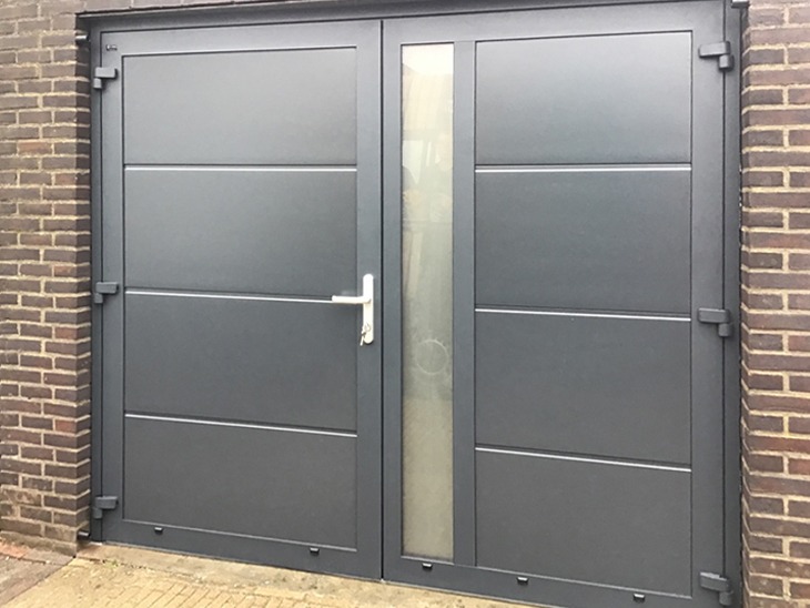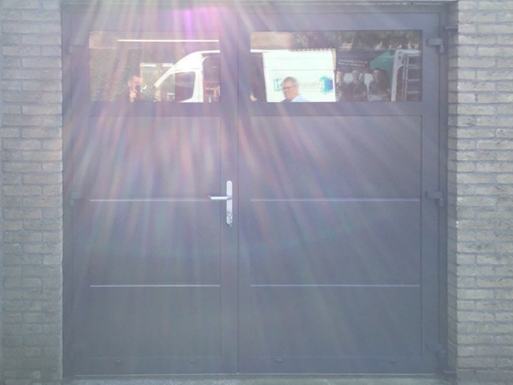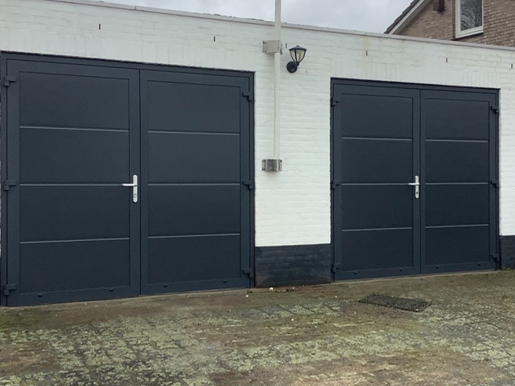 Samen met buren openslaande kunststof garagedeuren laten plaatsen.