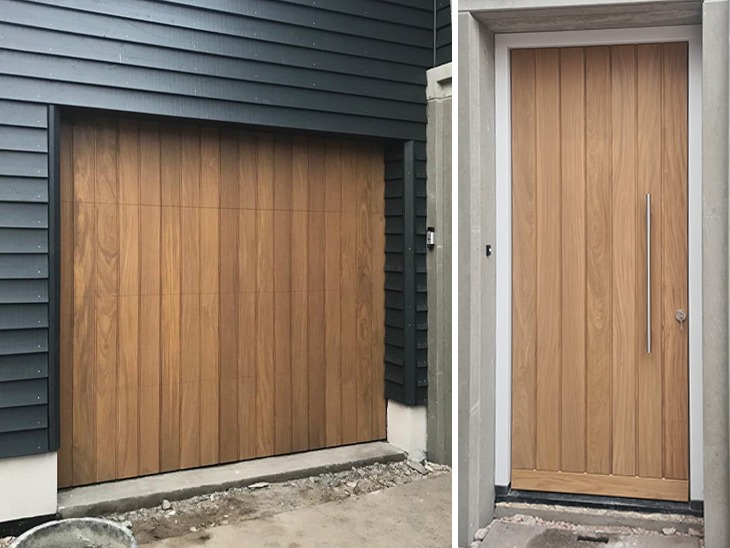 Voor onze prachtige nieuwbouw woning, hebben wij een houten sectionaal garagedeur en houten voordeur bij Different Doors aangekocht.