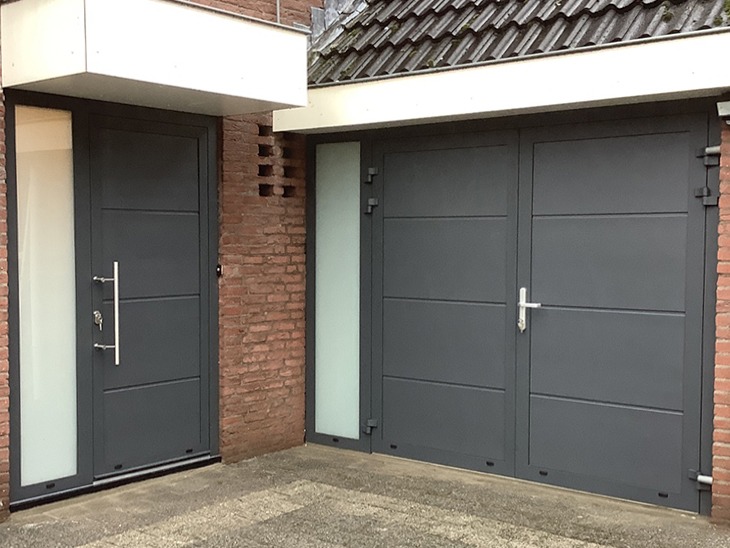 Voor onze in aanbouw zijnde nieuwbouwwoning zijn wij opzoek gegaan naar een bedrijf dat voor ons een garagepoort met voordeur, bekleed met hout, op maat kon maken. Via kennissen kwamen wij uit bij Different Doors. Zij waren zeer tevreden over het werk dat Different Doors bij hun geleverd heeft. Hierop hebben wij contact opgenomen met Different Doors. Na ons eerste fijn gesprek en vakkundige uitleg aan huis, hebben wij meteen gevraagd voor een prijsopgave. Na akkoord te zijn gegaan is Different Doors alles twee keer tot in de puntjes komen opmeten. Het later plaatsen van de elektrische garagepoort met voordeur is op zeer vakkundige wijze uitgevoerd door de monteurs van Different Doors. Nadat alles klaar was hebben wij de twee monteurs bedankt voor het mee denken en het op een professionele integere en betrokken manier afmaken van onze nieuwbouw woning. Wij zijn zeer tevreden en kregen gelijk veel positieve reacties uit onze omgeving. Mooi toch!