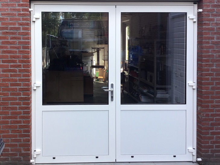 Eindelijk natuurlijk licht in mijn atelier doordat de garagedeur vervangen is door 2 openslaande deuren met glas ! Goede afwerking en vlot geplaatst !