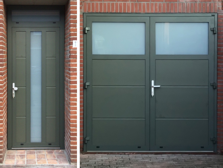 Prachtige nieuwe voordeur en garagedeuren.
