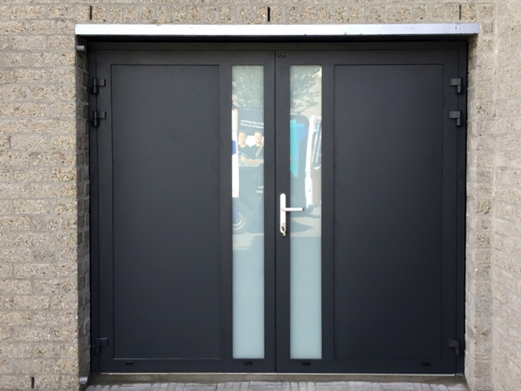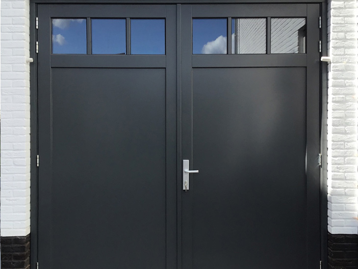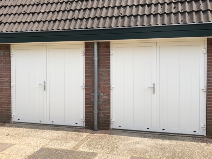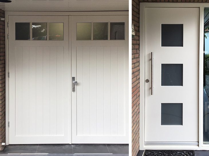 De openslaande garagedeuren met bijpassende voordeur zijn door vakkundige mensen naar volle tevredenheid van ons geplaatst.