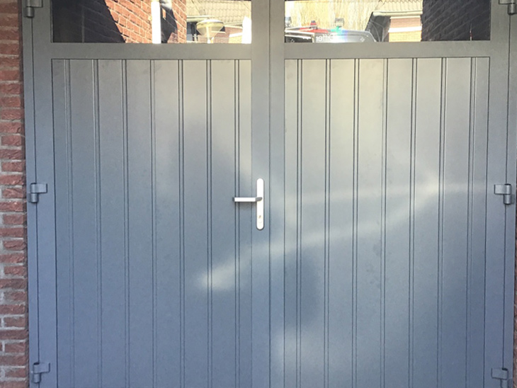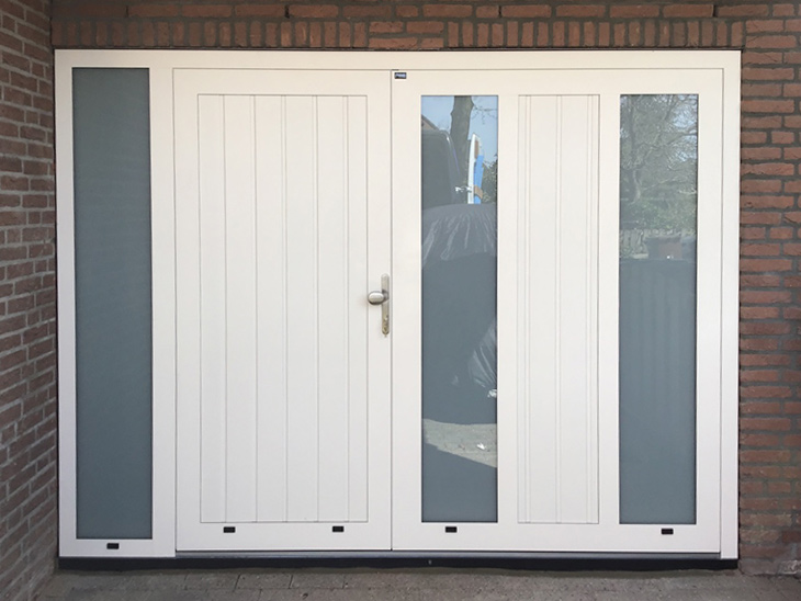Different Doors heeft een mooie oplossing ontworpen voor onze voordeur die tevens incidenteel als garagedeur moet kunnen functioneren. Zeer degelijke deur en het ziet er strak uit.