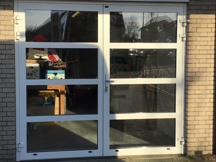 Oude kantel garagedeur prachtig vervangen door openslaande deuren met vensters