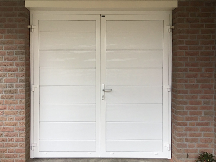 Onze oude kantelpoort was aan vervanging toe. Wij wilden deze vervangen voor een geïsoleerde poort met openslaande deuren met een a-symmetrische verdeling. Wij hebben diverse leveranciers bezocht. Uiteindelijk kon het dan toch niet of het werd heel erg duur. Bij Different Doors vonden wij wel waar wij naar op zoek waren. Wij zijn zeer tevreden met onze nieuwe poort.