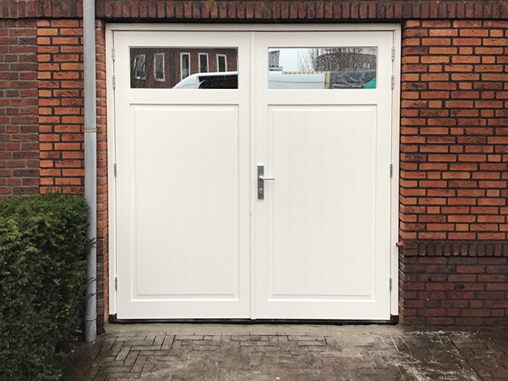 Onze 45 jaar oude houten kanteldeur van de garage was aan vervanging toe. Al heel snel kwam ik op de website van DifferentDoors. De openslaande garagedeuren van onze wensen stonden al in de fotogalerij dus de keuze was snel gemaakt en ook de prijsklasse was naar onze zin. Bezoek aan huis voor overleg en opmeten was heel prettig en duidelijk. Heel snel een deal gemaakt voor een goede prijs. De plaatsing een paar weken later was binnen 3 uur afgerond (incl. demontage oude deur) en is prima verlopen.