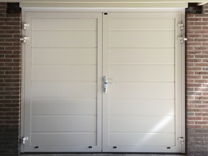 Wij waren al enige tijd op zoek naar vervanging van onze garagedeur, die na jaren van trouwe dienst echt aan vervanging toe was. Via internet gezocht en de nodige offertes aangevraagd. Daarnaast ook diverse bedrijven bezocht. Het waren allemaal klinkende verhalen maar echt overtuigd waren wij nog niet. Daarnaast konden wij niet besluiten of het een sectionaaldeur of gewoon openslaande deuren moesten worden. Het bedrijf Different Doors dat door ons al eerder op internet was gevonden, werd door ons pas als een laatste (vergelijkende) optie benaderd. Er werd een afspraak gemaakt en in het daarop volgende contact met de adviseur Sil Kuppens bleek deze goed aan te voelen wat wij zochten en wat onze wensen waren. Wij kwamen hierdoor dan ook vrij snel tot de conclusie dat dit bedrijf het ging worden. Een bestelling voor dubbel openslaande deuren werd geplaatst . Deze werd na een inmeetbezoek waarbij ook de uiteindelijke kleur werd bepaald, definitief. Het was nog even spannend of de deuren voor onze geplande vakantie geleverd en geplaatst konden worden. Dit bleek op de valreep het geval. Tijdens het plaatsen werden wij als klant betrokken bij de plaatsing. Kortom het blijkt een goede keuze te zijn geweest.