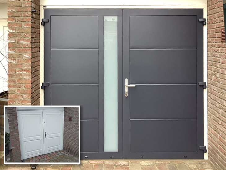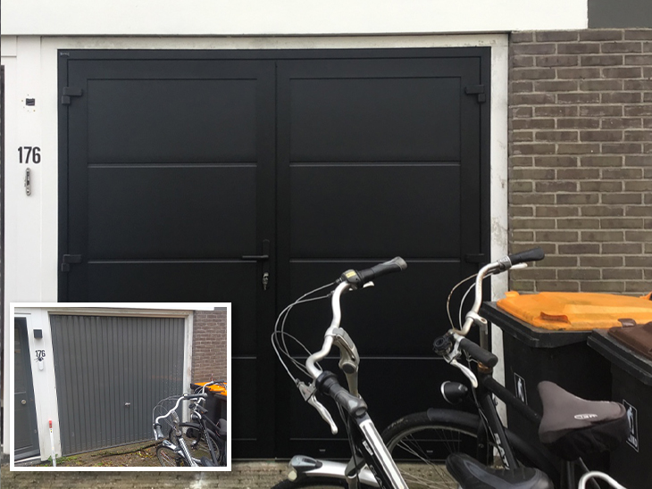 Wij zijn heel tevreden met onze nieuwe garagedeuren. Toen wij het huis kochten zat er nog een oude metalen kanteldeur in de garage waar erg veel kou door kwam, waardoor de kamer erboven ook altijd koud was. Met onze nieuwe garagedeuren is ons huis echt veel beter geïsoleerd, en zijn die dubbel openslaande deuren ook nog eens ontzettend praktisch! Wij hebben gekozen voor zwarte (Ral 9005) openslaande deuren met horizontale panelen, omdat we dit een stoere en strakke maar ook veilige uitstraling vonden geven. Alle informatie en het proces van de adviseur was ook heel behulpzaam, en hij vond het ook niet erg dat ik hem (op tijd) nog een aantal keer heb lastig gevallen met een wijziging van de kleur keuze. De vakmannen hebben de deuren er binnen 3 uur in gezet, en netjes schoongeveegd voor de oplevering. Wij zijn al met al helemaal tevreden!