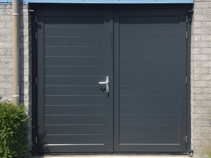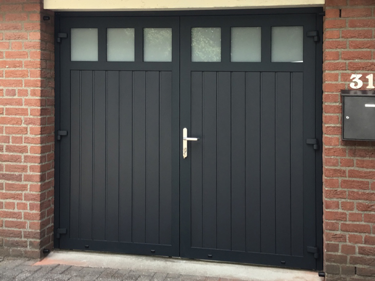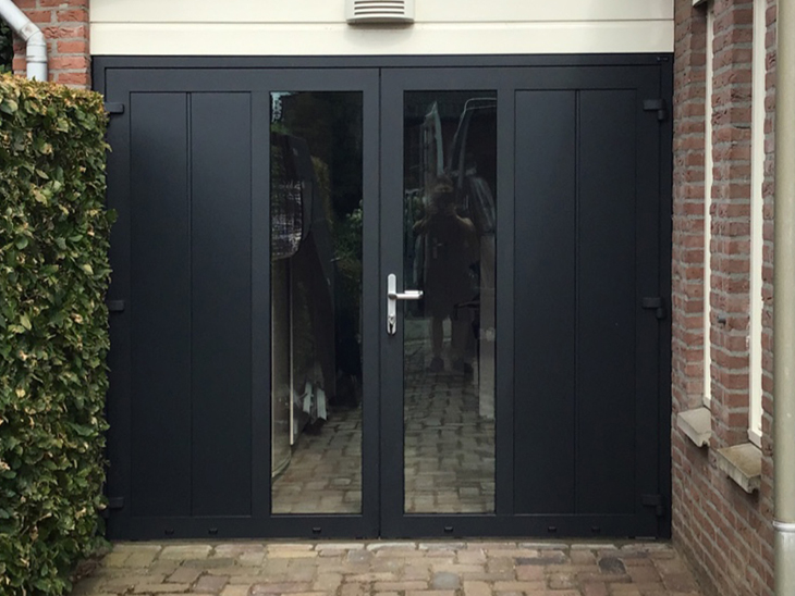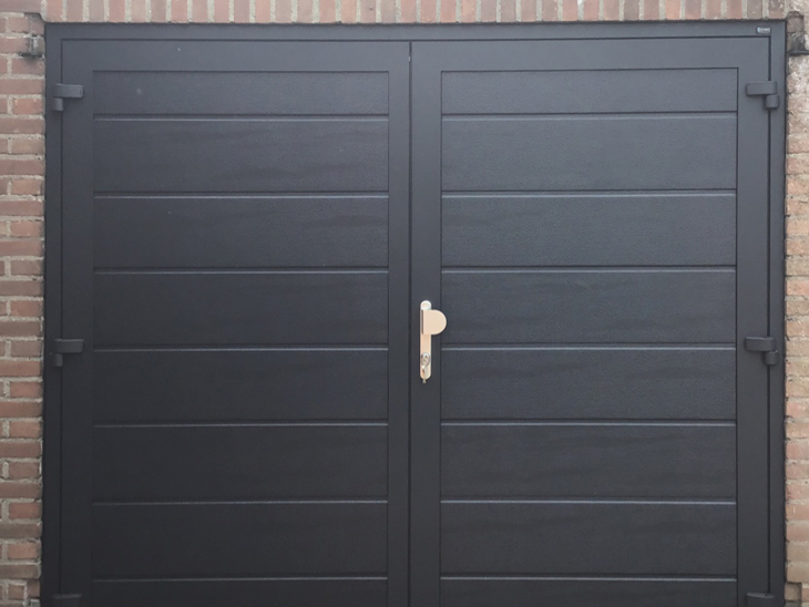 4 Juli jl. heeft Different Doors onze nieuwe openslaande garagedeur geplaatst. De deur is nog mooier dan ik had verwacht. We hadden altijd voor ogen dat onze nieuwe garagedeur verticale belijning moest hebben. De vertegenwoordiger Harm Verstappen kwam met een voorstel om te kiezen voor een horizontale belijning. Dat was een schot in de roos. Het was even uitzoeken hoe hoog de onderlinge afstand van de belijning zou moeten zijn, maar het resultaat mag er zijn. We krijgen veel positieve reacties op onze nieuwe deur. Alles is ook zeer vakkundig geplaatst.