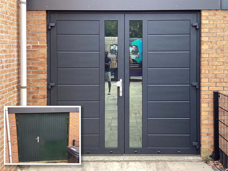 Waren snel klaar met het demonteren van de oude garagedeur en het plaatsen van de nieuwe deuren.