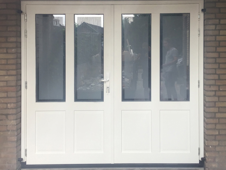 Na het adviesgesprek bij mij thuis , heb ik 2 houten, openslaande garagedeuren besteld. Mijn specifieke wens voor matte ruiten met een heldere rand was geen probleem; er is direct geïnformeerd wat er mogelijk was. De schouw ter plekke gaf nieuwe inzichten, en zo besloot ik ook het paneel boven de deuren te laten vervangen. De montage was geweldig. De twee vakmannen dachten proactief mee en hebben zeer netjes en degelijk werk geleverd. Het resultaat mag er zijn! Alle afspraken nagekomen en alles keurig afgewerkt. Ik raad DifferentDoors absoluut aan.