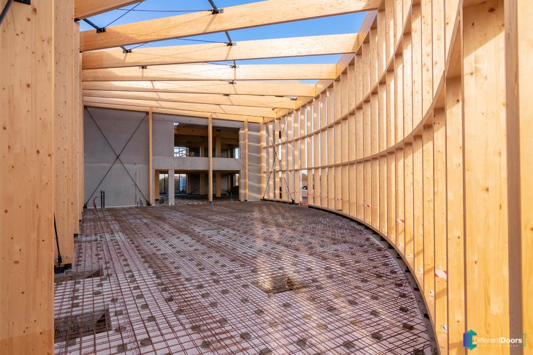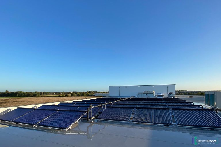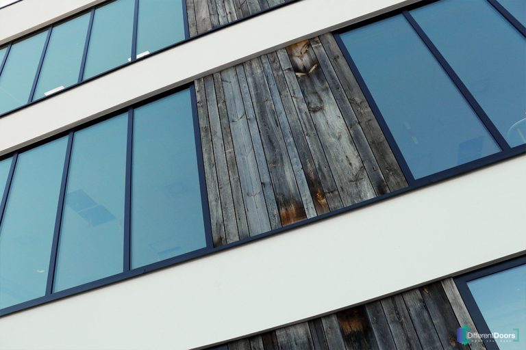 Bij Different Doors is er gebruik gemaakt van triple beglazing in het gehele pand. Daarnaast is er een volledige isolatielaag van 30 cm rondom aangebracht, verborgen onder een laag buiten stucwerk. Voor de gevelbekleding is gebruik gemaakt van barnwood. Barnwood is afkomstig van oude ‘barns’ (schuren) en heeft hierdoor een tweede leven gekregen. Verder zijn alle kozijnen extra luchtdicht gemaakt door speciale tape, dit zorgt voor minimale verliezen bij de ramen.