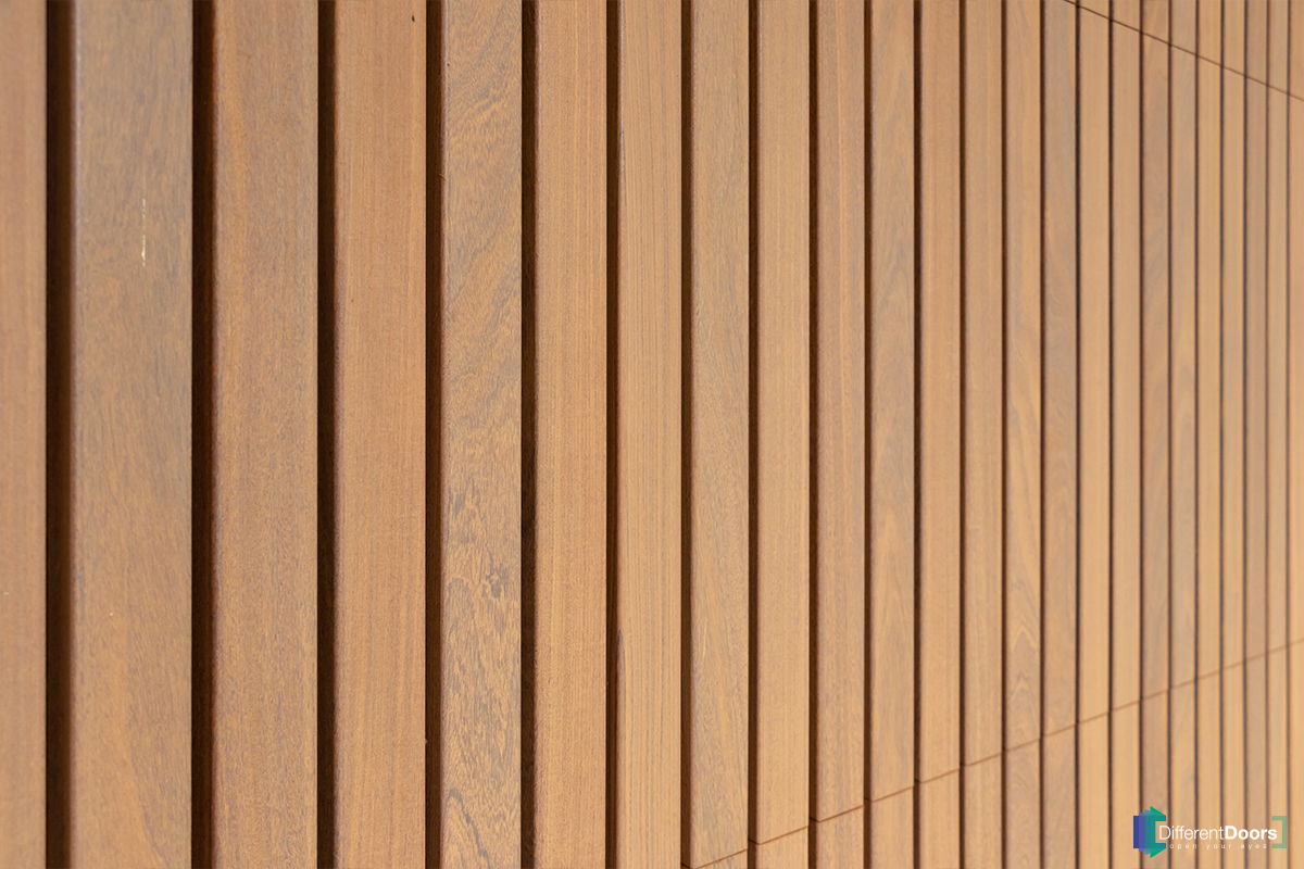 Voor dit project is er gebruik gemaakt van Afrormosia hout. Dit hout kenmerkt zich door de natuurlijke kleurverschillen in het hout en een duidelijk zichtbare vlamtekening. De combinatie van deze twee kenmerken maakt het een populaire houtsoort voor garagedeuren en gevelbekleding. Het hout heeft daarbij ook nog eens lage duurzaamheidsklasse waardoor het hout jarenlang goed blijft.