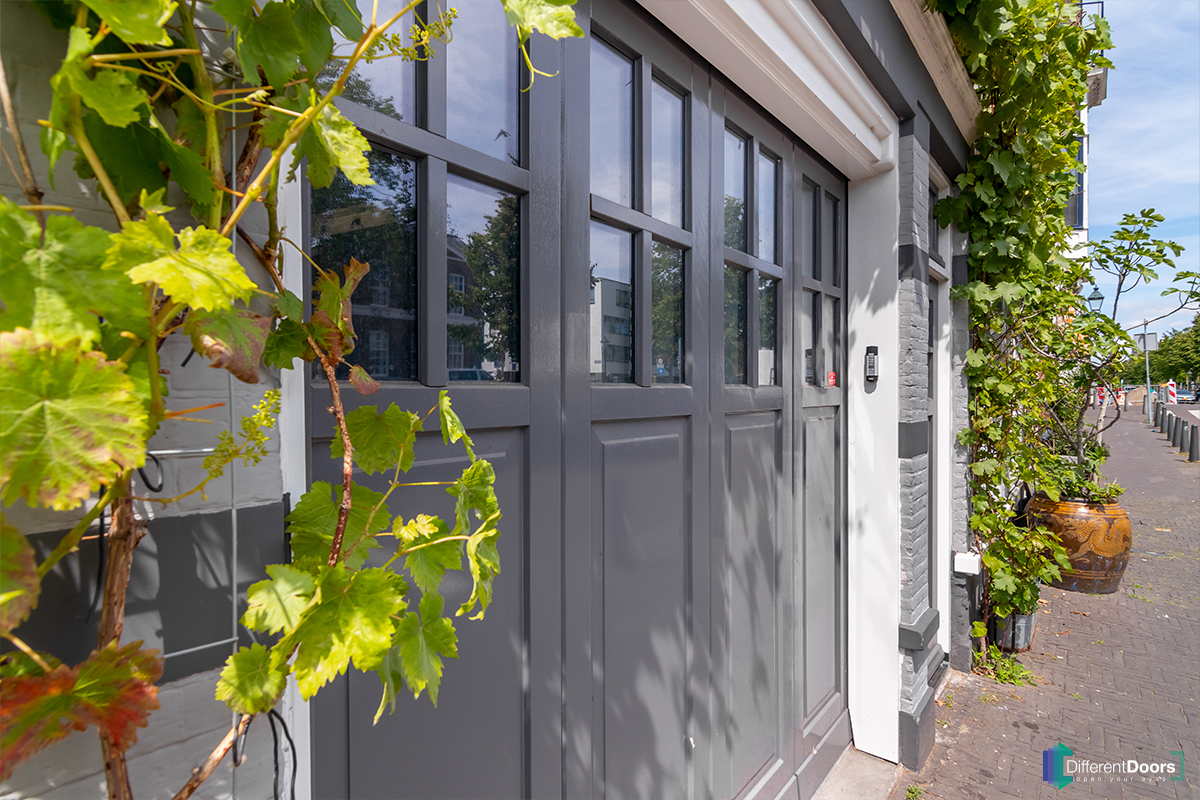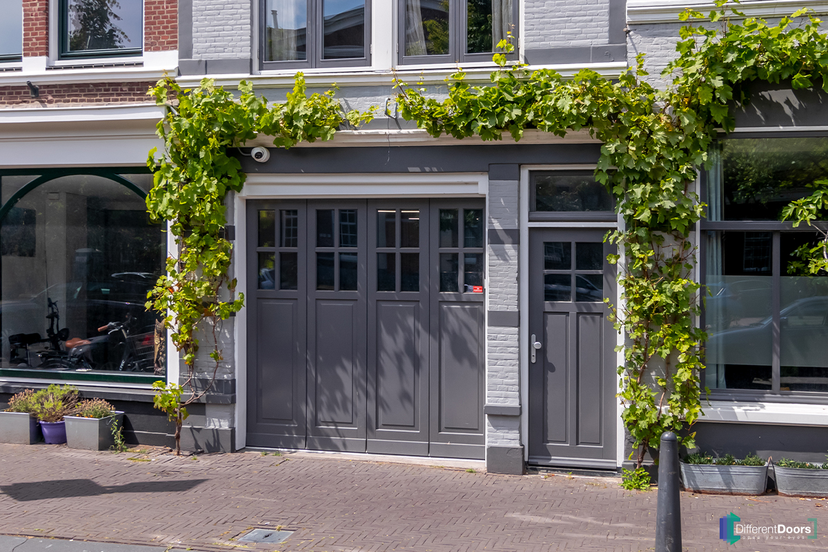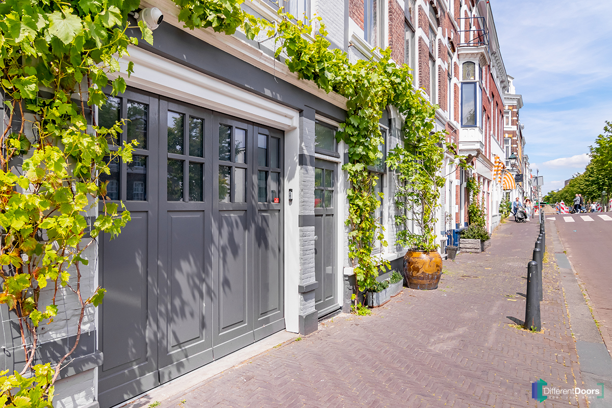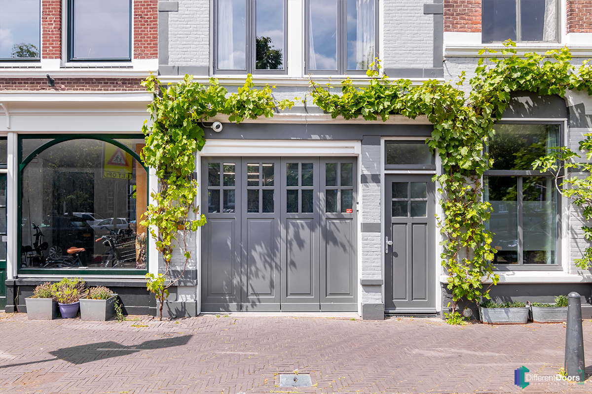 Bij een prachtig monumentaal pand in hartje Den Haag heeft Different Doors een zijwaartse garagedeur gerealiseerd volledig in stijl van de woning. Zo zijn de bossing panelen en roedens in het raamwerk volledig afgestemd op de al bestaande voordeur en komen ook de kleuren exact overeen. Een prachtig staaltje vakmanschap waarbij de klassieke uitstraling van de woning volledig in tact gebleven is.