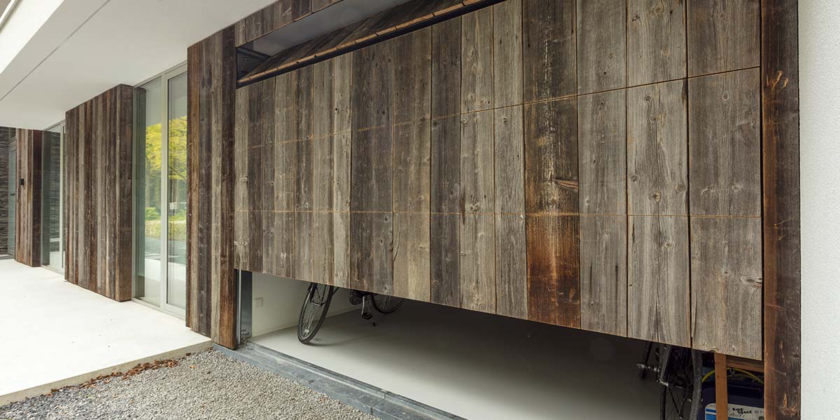In Dorst monteerde Different Doors deze prachtige houten sectionale garagedeur van Barnwood. Barnwood is een houtsoort die door de tijd en door de wind getekend is. Hout dat vroeger gebruikt werd voor de bekleding van schuren (Barn), de houtsoorten die men hier voor gebruikte waren meestal eiken, pine en hemlock.