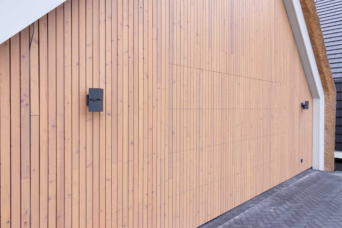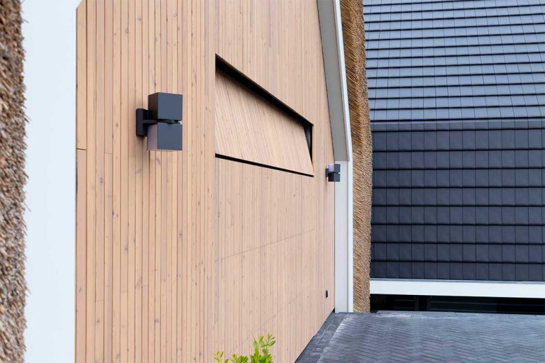 Home » Projecten » Bijzondere houten sectionaaldeur bij schuurwoning