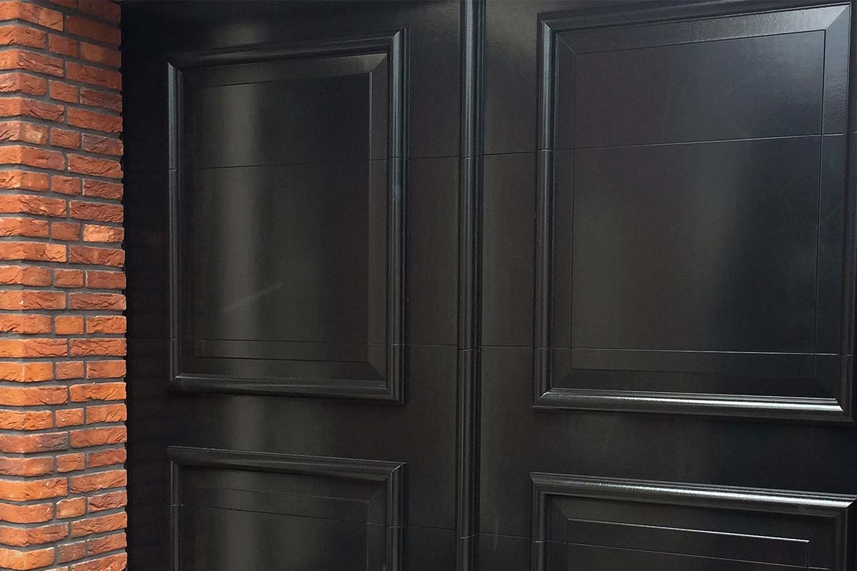 Een houten sectionaaldeur die eruit ziet als een openslaande deur volledig naar wens van de klant. Zo zijn er vlakke panelen met sierlijst gebruikt en is er een slaglat en dorpel aan de garagedeur toegevoegd. De uitstraling van de deur wordt hierdoor enorm verhoogd. De garagedeur is volledig in onze eigen werkplaats geproduceerd en door ons montageteam gemonteerd. Naast de prachtige uitstraling heeft deze garagedeur nog enkele belangrijke voordelen: