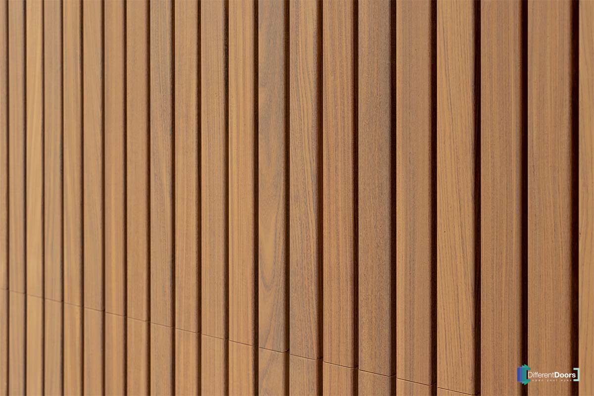 Voor het hele project is Afrormosia hout gebruikt. Afrormosia is een duurzame houtsoort en daardoor zeer geschikt als gevelbekleding of garagedeur. Door het goudbruine hout verticaal te plaatsen krijgt de garage een luxe uitstraling.