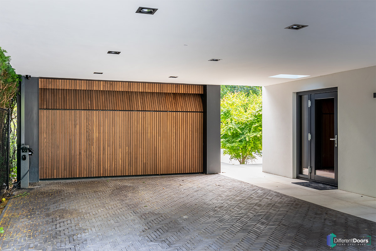 Bent u op zoek naar een ander type garagedeur of een garagedeur bekleed met hout? Bij Different Doors bent u aan het juiste adres. We gaan graag iedere uitdading aan waarbij vrijwel iedere houtsoort, kleur, techniek of afwerking mogelijk is. Wat u ook wenst; de garagedeuren van Different Doors worden altijd volledig op maat gemaakt. Onze ontwerpers maken een ontwerp dat perfect aansluit bij uw eisen en wensen en de stijl van de woning. Hierbij is alles mogelijk!