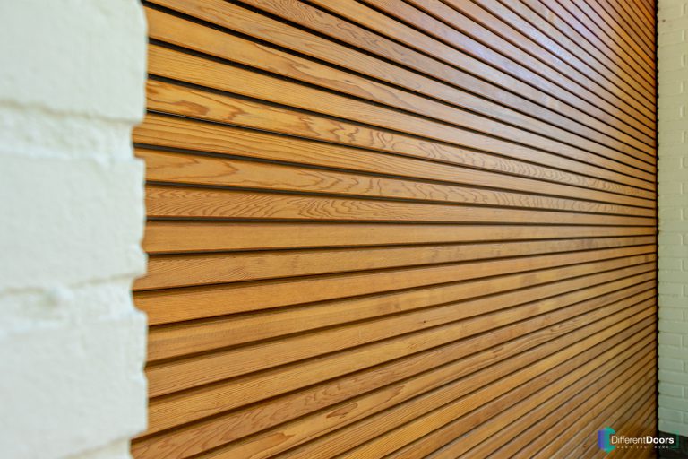 Voor dit project is er gebruik gemaakt van Red Cedar hout. Dit hout kenmerkt zich door zijn wonderlijke kleurvariaties en mooie vlamtekening. Red Cedar heeft van nature een hoge duurzaamheidsklasse (2). Red Cedar hout kan zowel bewerkt als onbewerkt toegepast worden. Voor dit project is het hout behandeld met een speciale lak dat vergrijzing voorkomt zodat de houten garagedeur zijn kleur behoudt.