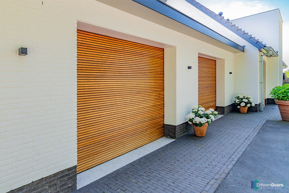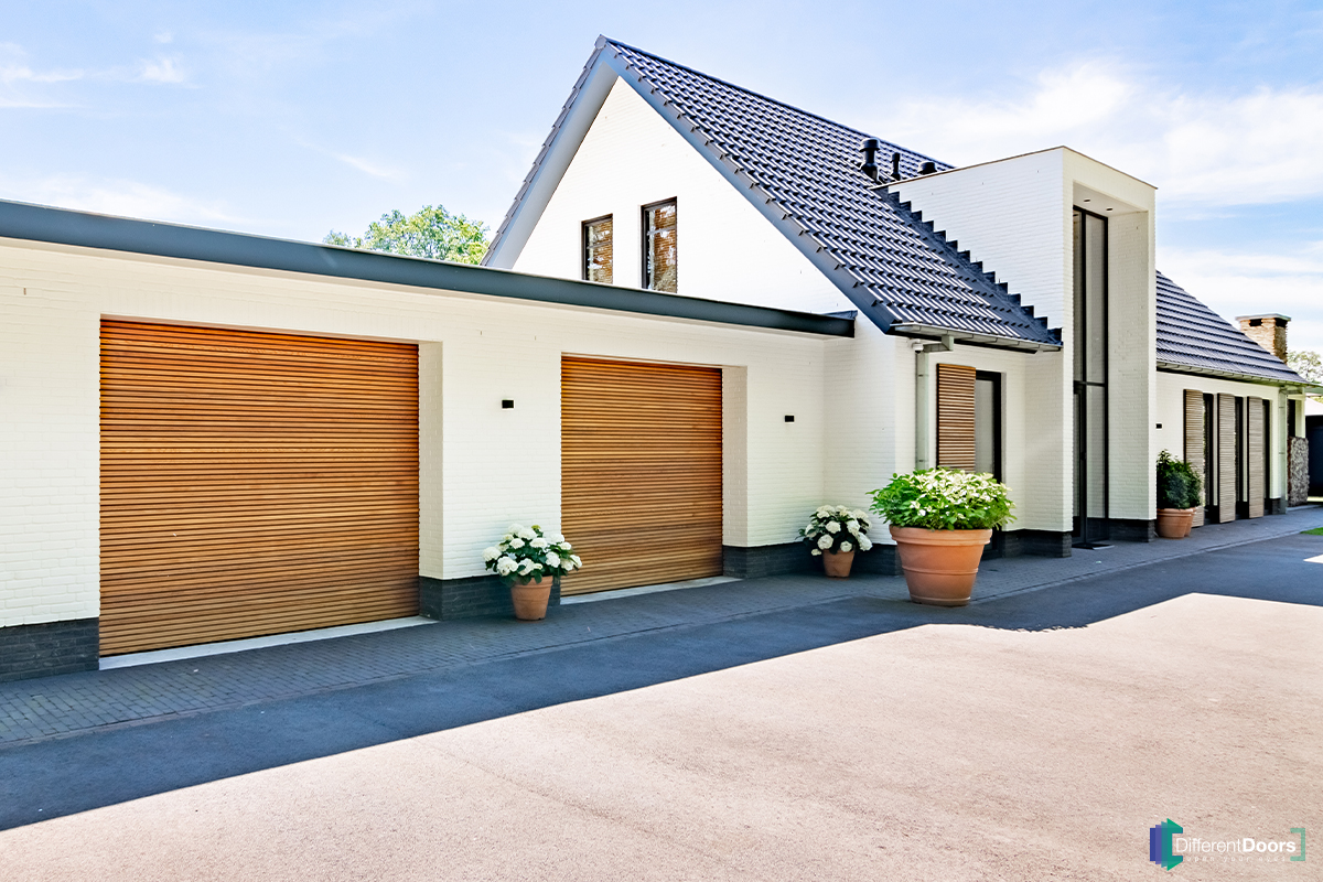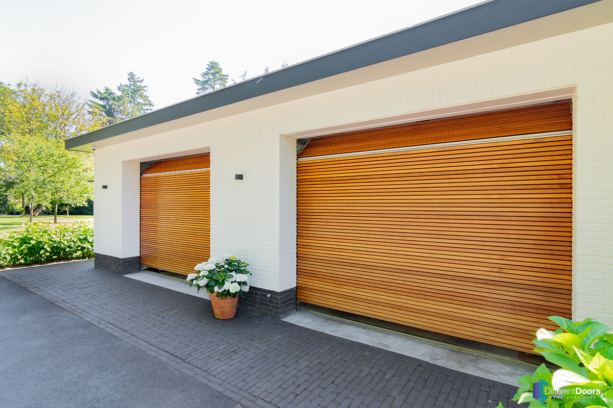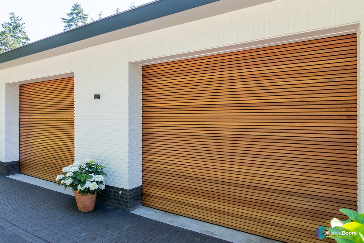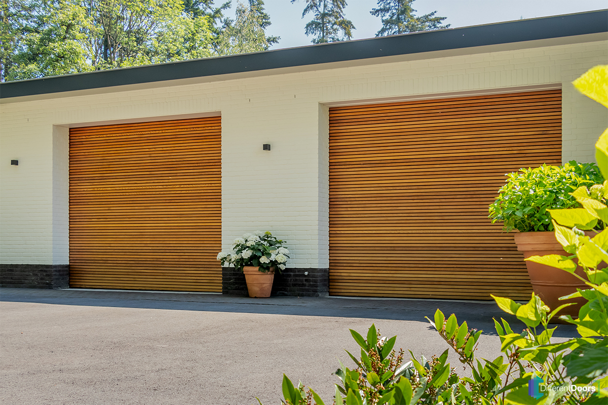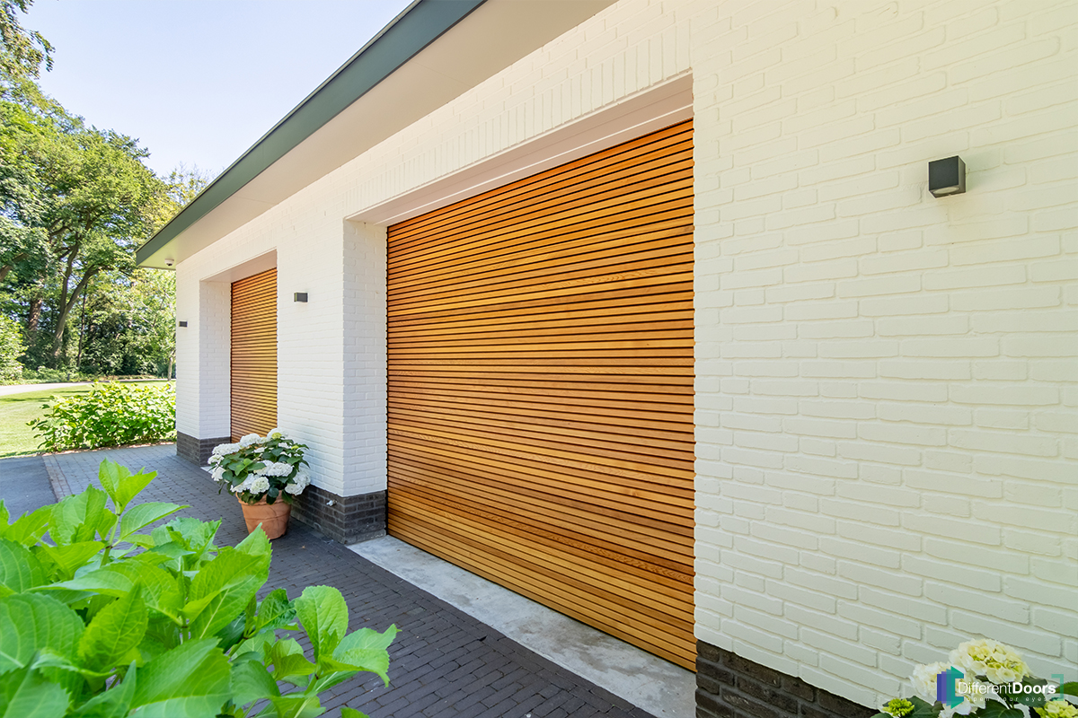 Different Doors heeft in het Twentse Enschede twee prachtig mooie houten sectionaaldeuren mogen plaatsen. De houten garagedeuren zijn voorzien van horizontale latten en zijn achter de dag geplaatst. De warme kleur van het hout sluit mooi aan bij de witte, neutrale kleur van de woning.