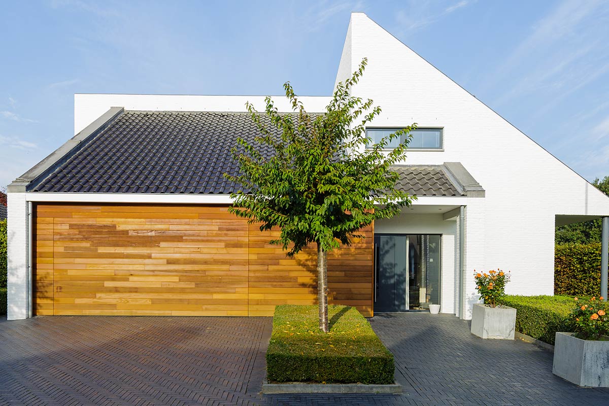 Red Cedar is een duurzame houtsoort met een natuurlijke uitstraling. De Red Cedar garagedeur in dit project is behandeld met een speciale lak. Dit voorkomt vergrijzing en zorgt er voor dat de houten garagedeur zijn kleur behoudt.