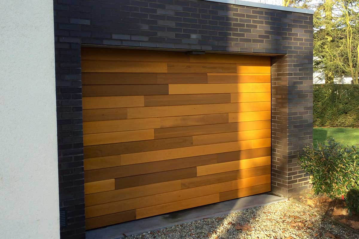 Different Doors realiseerde deze prachtige houten garagedeur van Red Cedar-hout, voorzien van perfecte isolatie, kwaliteit en afwerking. Dankzij de afwerking met olie beschikt deze luxe garagedeur over een fraaie uitstraling! De garagedeur van Red Cedar-hout is volledig elektrisch en gaat verticaal open dankzij horizontale panelen. Dankzij de structuur van de houten planken zijn de panelen niet zichtbaar wanneer de elektrische houten garagedeur gesloten is.