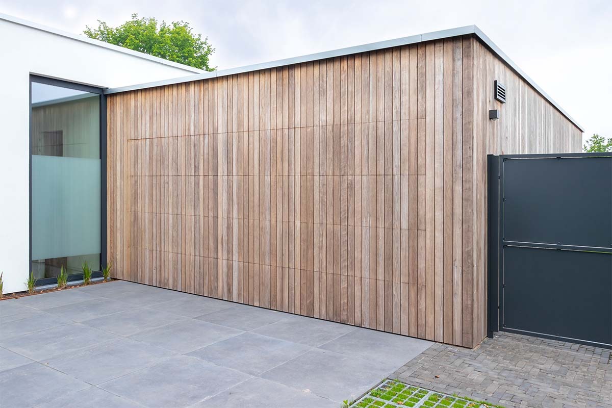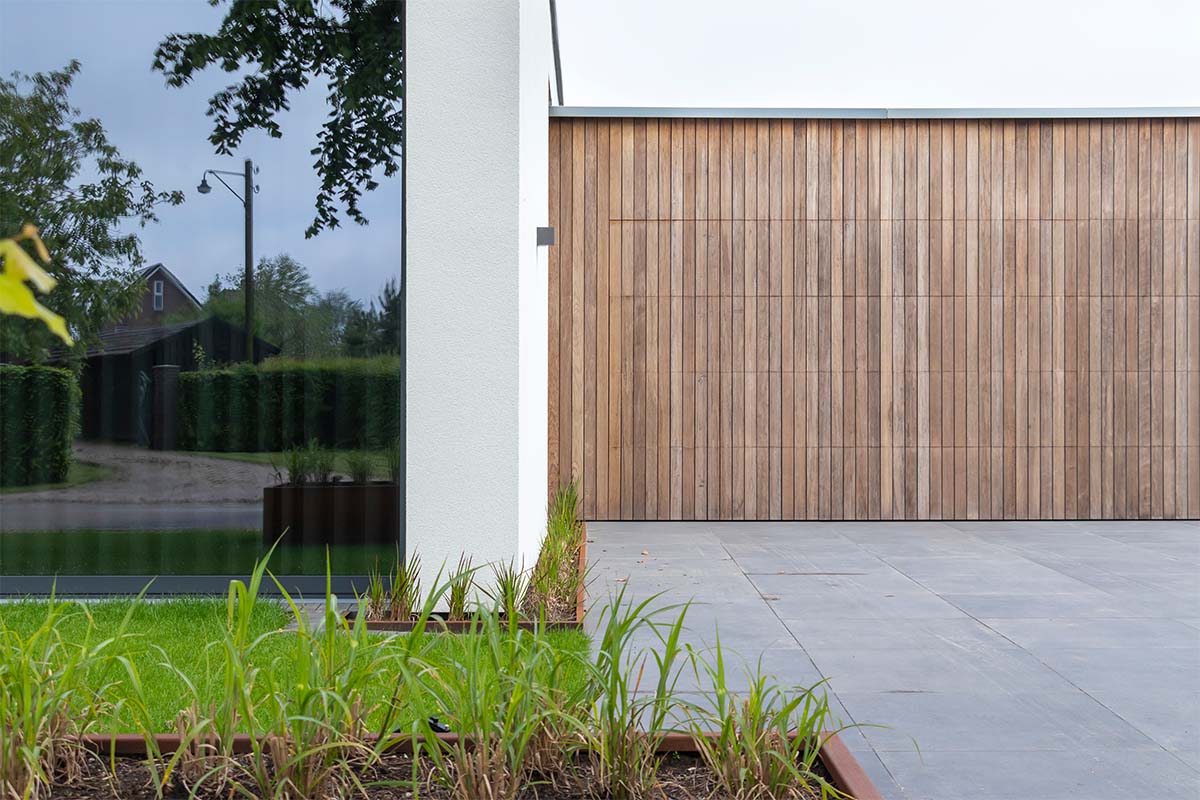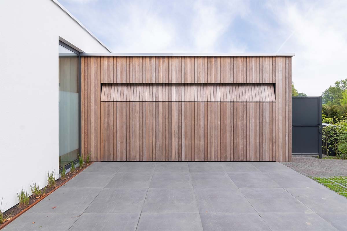 Houten garagedeur strakke villa