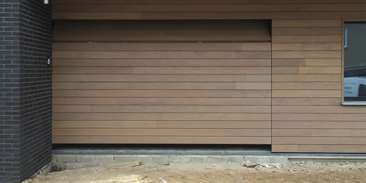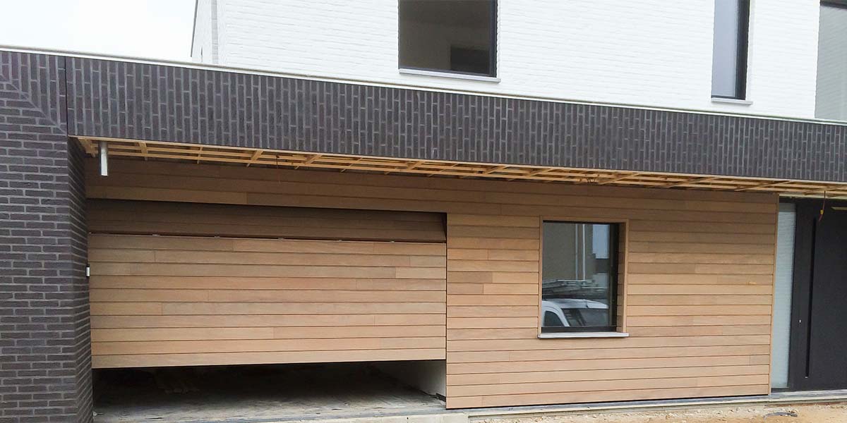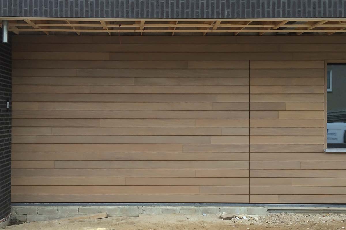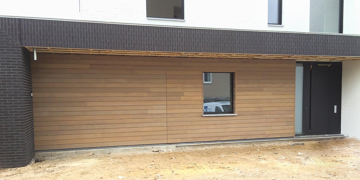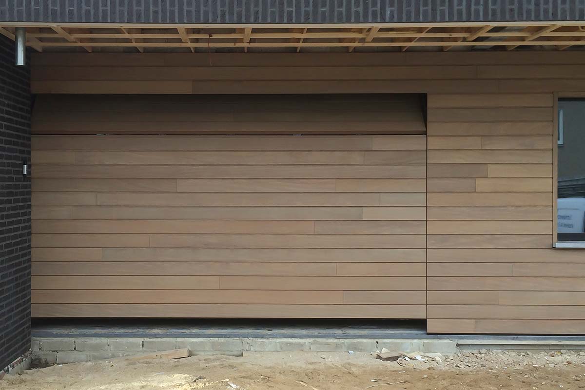 Houten sectionaaldeur geïntegreerd in houten gevel – Eijsden