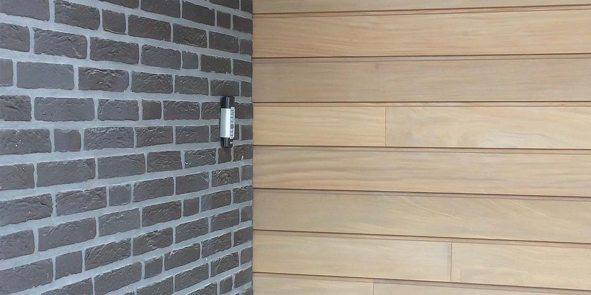 Different Doors monteerde in Eijsden dit mooie houten garagedeurproject. Het betreft een afrormosia houten elektrische sectionaaldeur geïntegreerd in de houten gevel.