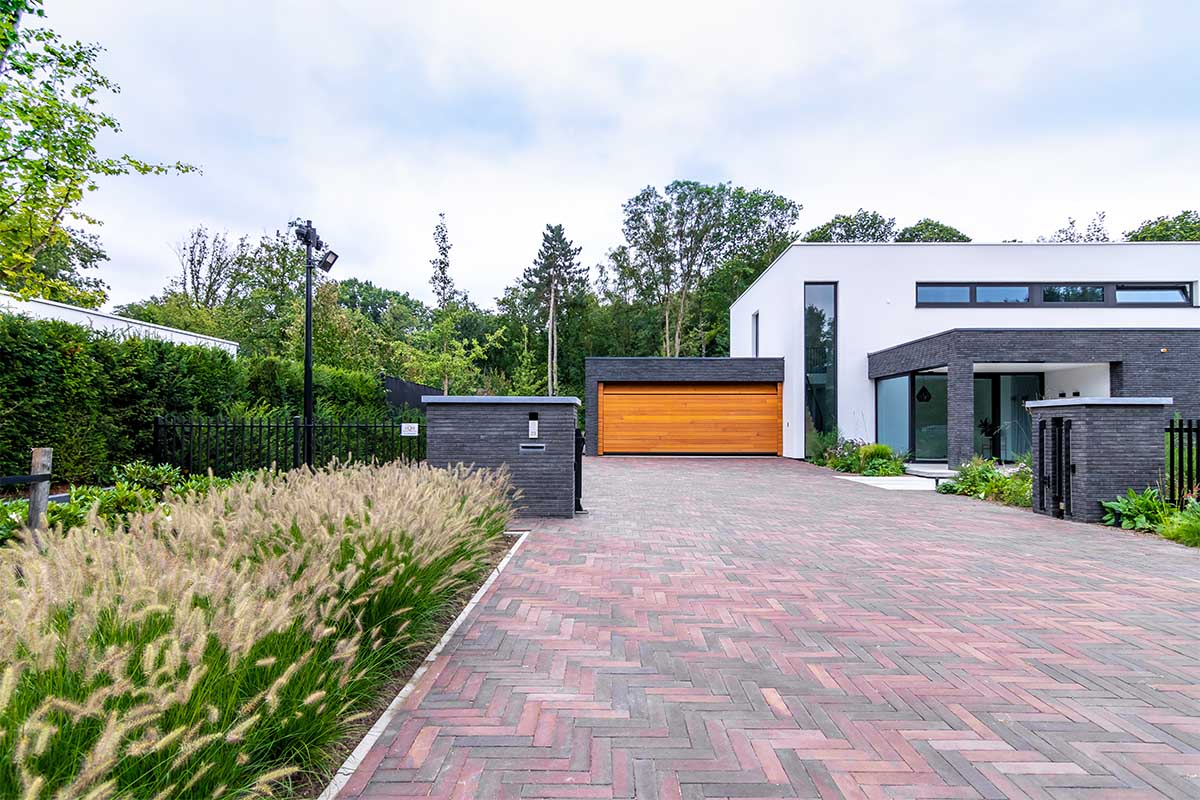 Red Cedar is een duurzame houtsoort met een natuurlijke uitstraling. De Red Cedar garagedeur in dit project is behandeld met een speciale lak. Dit voorkomt vergrijzing en zorgt er voor dat de houten garagedeur zijn kleur behoudt.