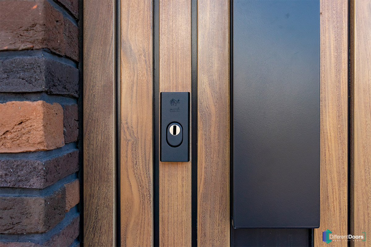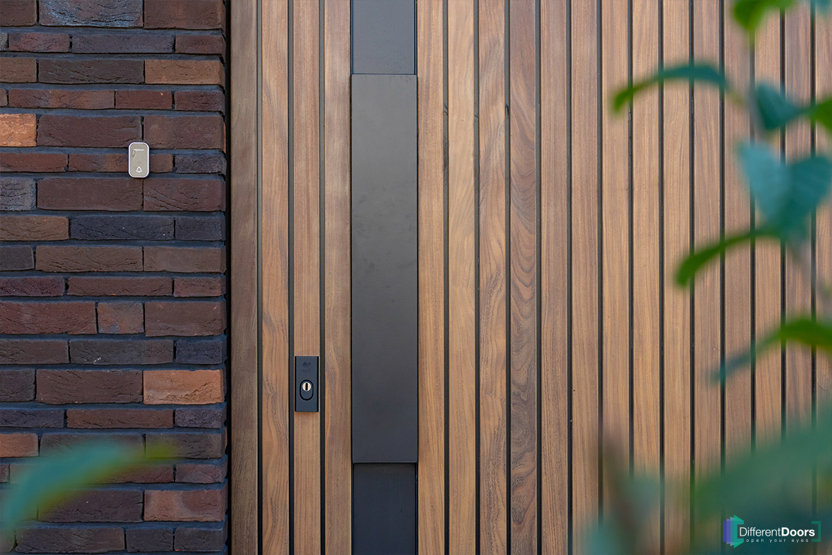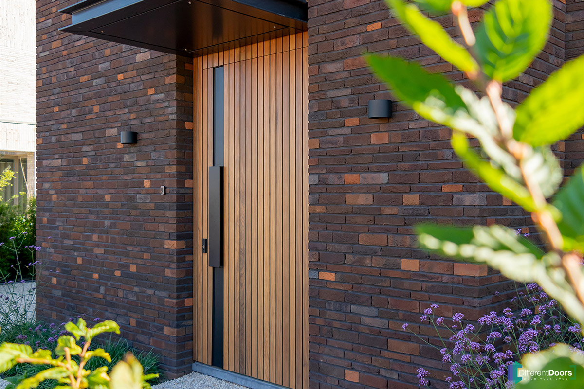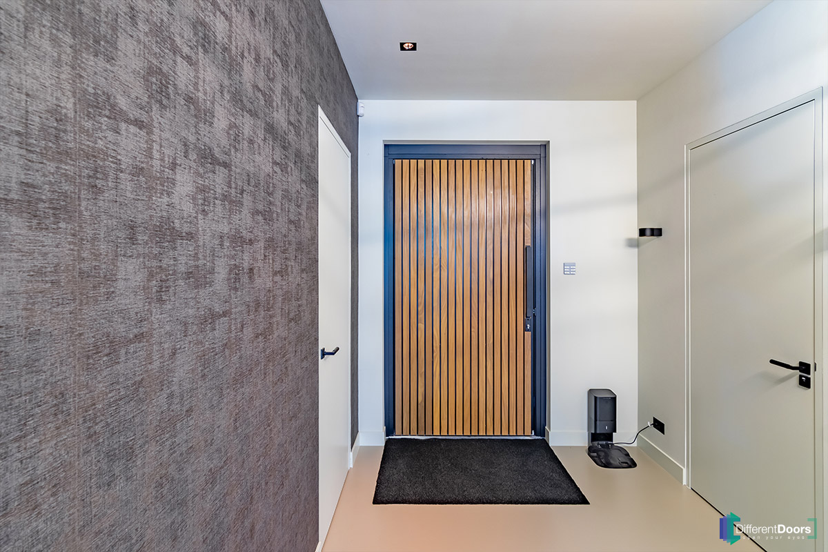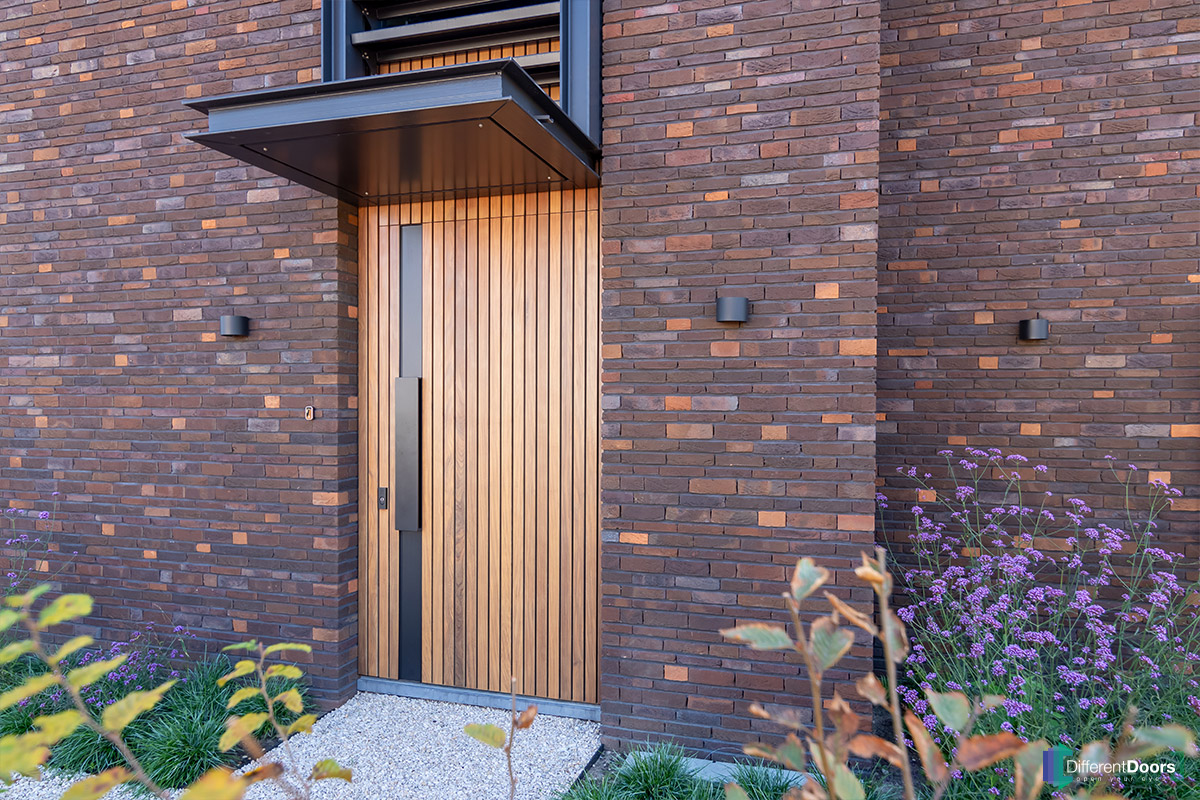 Bij een nieuwbouwwoning in Gorinchem heeft Different Doors de entree van een schitterende houten taatsdeur mogen voorzien. De pivoterende deur is gemaakt van afrormosia hout dat zich kenmerkt door zijn zichtbare vlamtekening en warme kleur. Het uitnodigende karakter van dit hout laat direct een welkome indruk achter bij gasten.