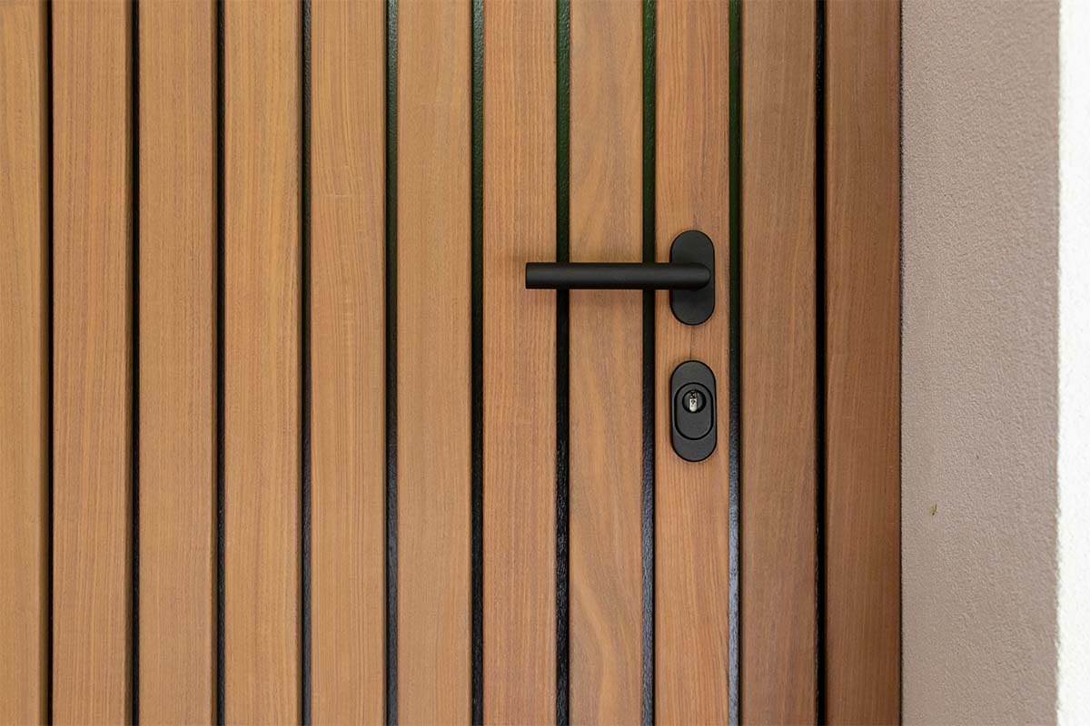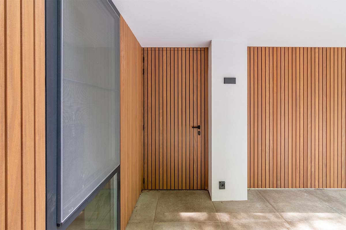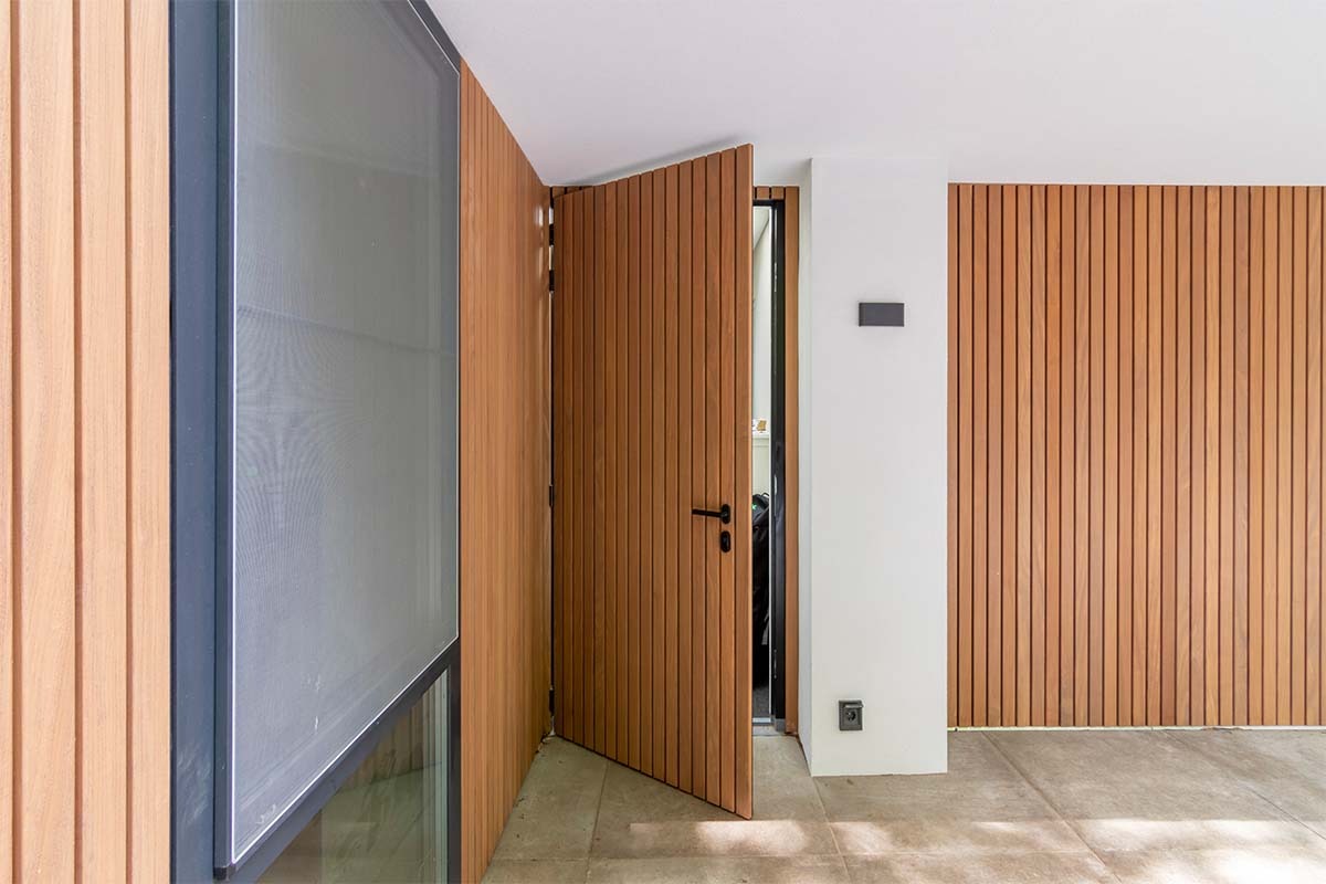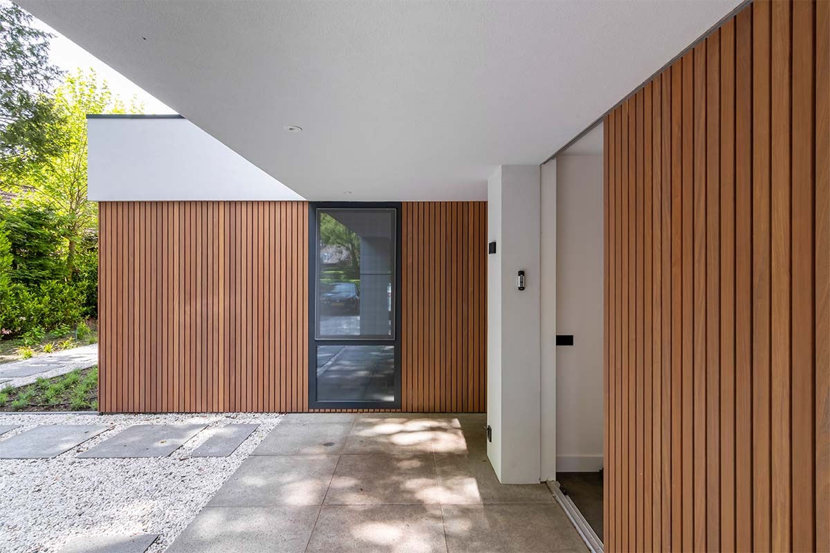 Different Doors realiseerde ook de gehele gevelbekleding en loopdeuren rondom de woning. Zo is er een samenhangend geheel gecreëerd.