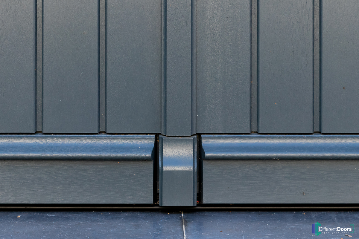 Om de garagedeuren van een klassieke uitstraling te geven zijn ze voorzien van een slaglat, weldorpel en neutje. Dit zijn welbekende kenmerken van deuren van ‘vroeger’. Ondanks de klassieke uitstraling zien de deuren er ontzettend strak en netjes uit. De antracietgrijze kleur van de garagedeuren passen mooi bij de natuurstenen gevel rondom de garagedeuren.