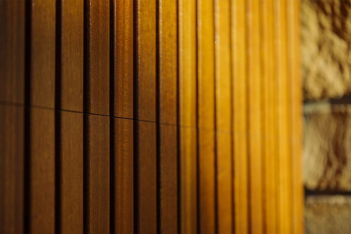 Mahonie hout heeft een egale, warme kleur waardoor het een populaire houtsoort is. Daarnaast heeft het hout een fijne nerfstructuur en weinig tot geen pinholes. Het hout heeft van zichzelf een hoge natuurlijke duurzaamheidsklasse waardoor het uitermate geschikt is voor buitentoepassingen zoals deze garagedeur.