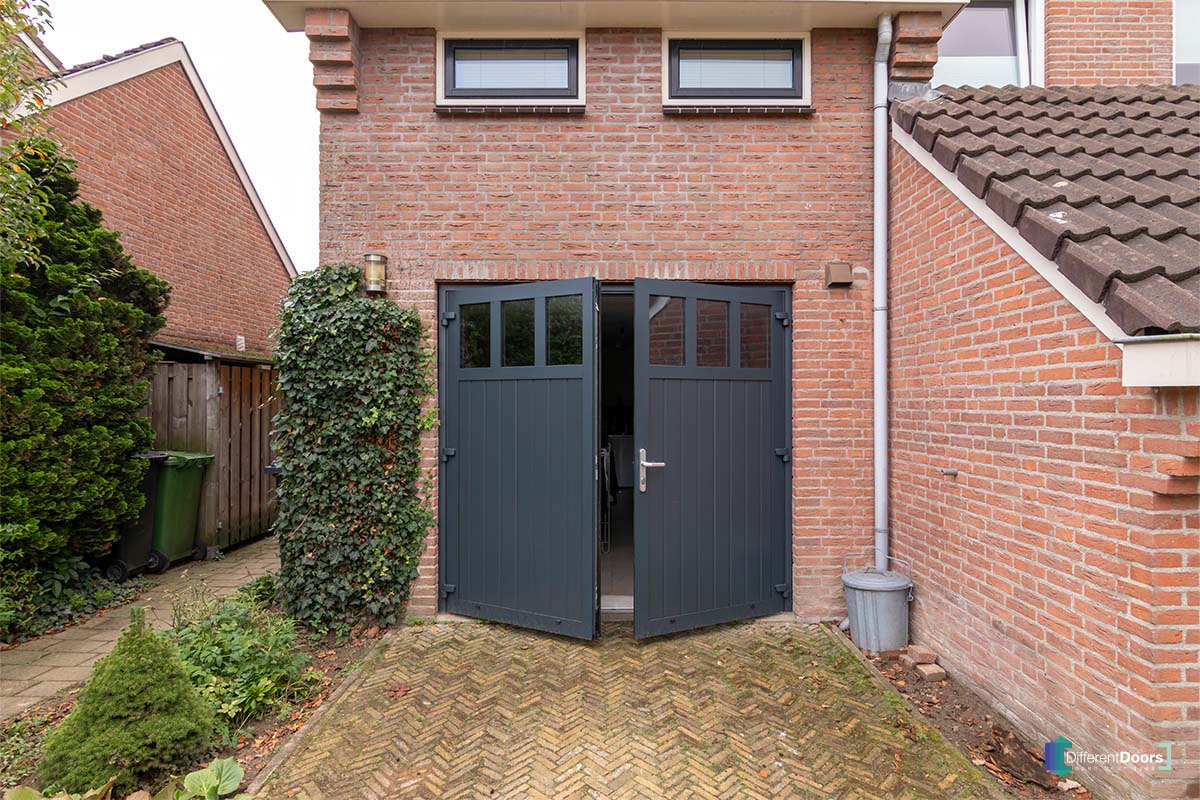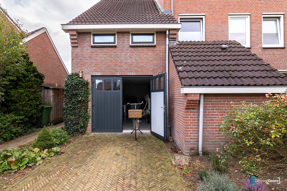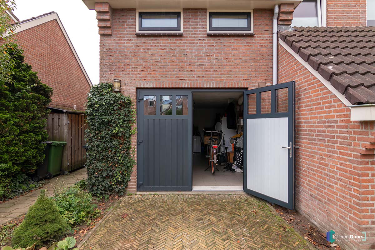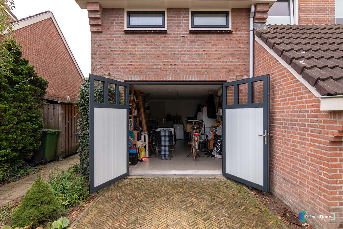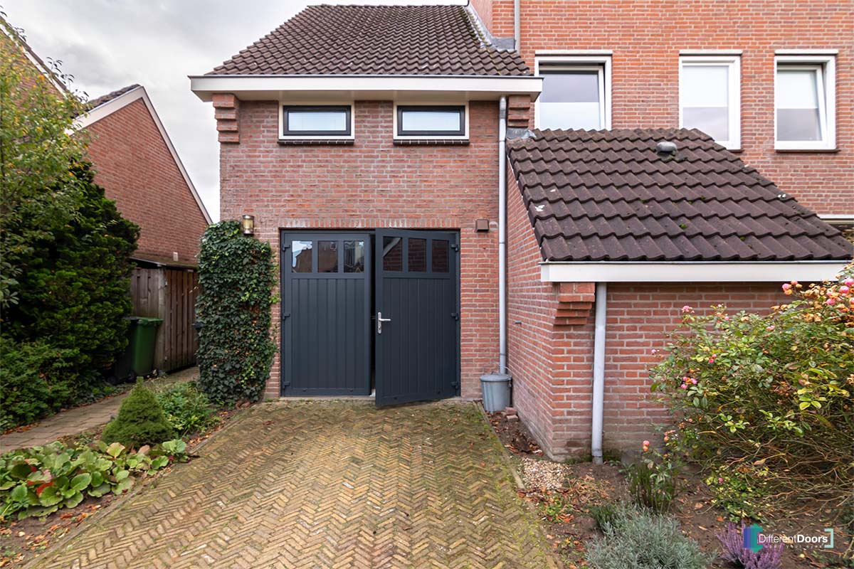In het Noord-Brabantse Helmond heeft Different Doors een verouderende sectionaal garagedeur met glas mogen vervangen door een prachtige, moderne openslaande garagedeur. Om het daglicht in de garagedeur te behouden is er opnieuw gekozen voor een garagedeur met ramen. Deze ramen zijn voorzien van hoogwaardig HR++ glas voor optimale isolatie.