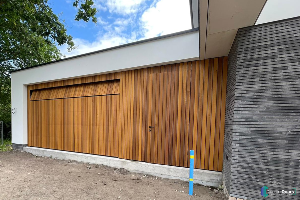 Different Doors realiseert houten garagedeuren in iedere gewenste stijl. Van verticale houten sectionaaldeuren tot houten sectionaaldeuren gelijk met de gevel. Daag ons uit en wij maken ook uw woning extra bijzonder.