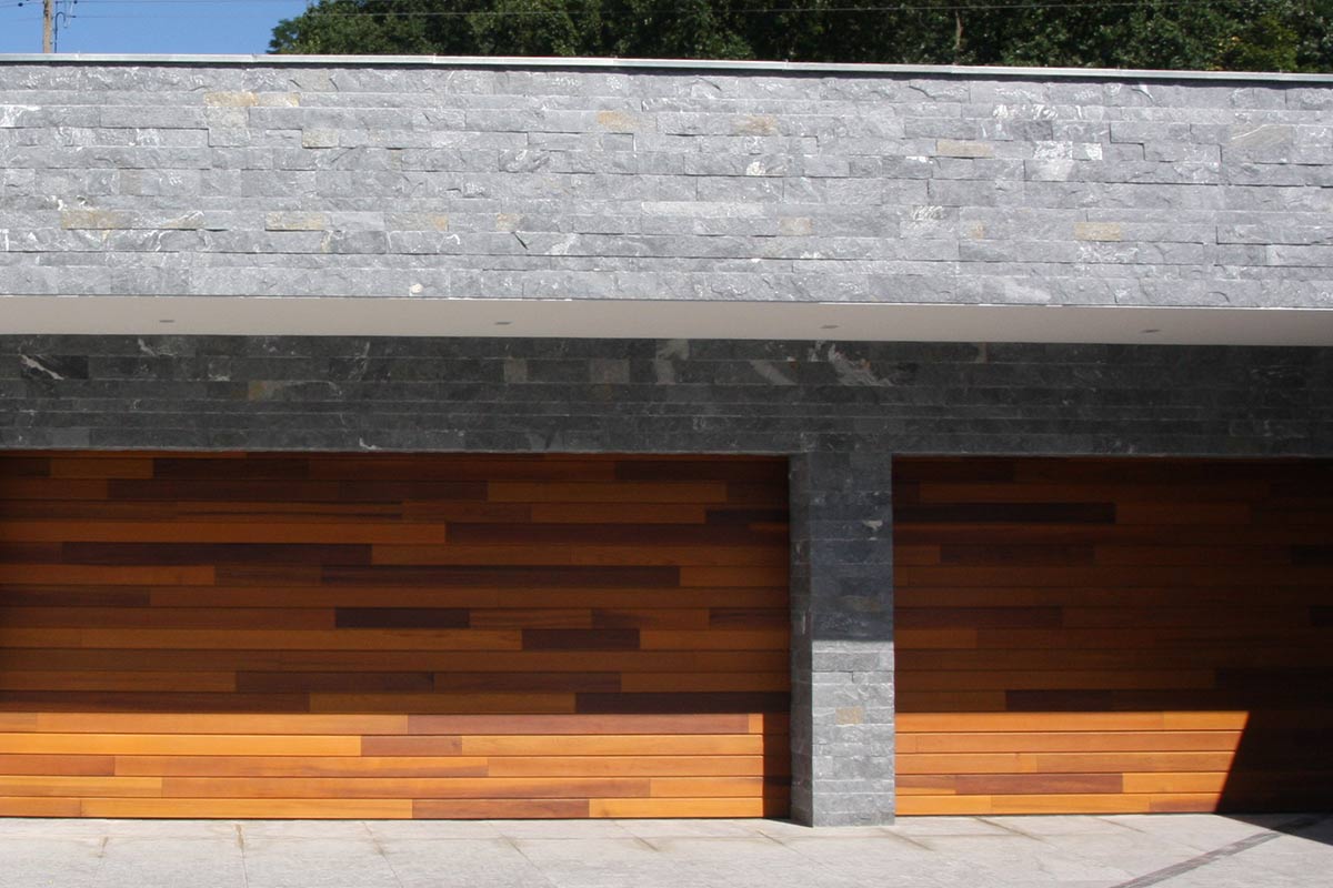 Een leuk detail bij dit project is dat de planken van de houten sectionaalpoorten door lopen in de volgende houten sectionaalpoort.
