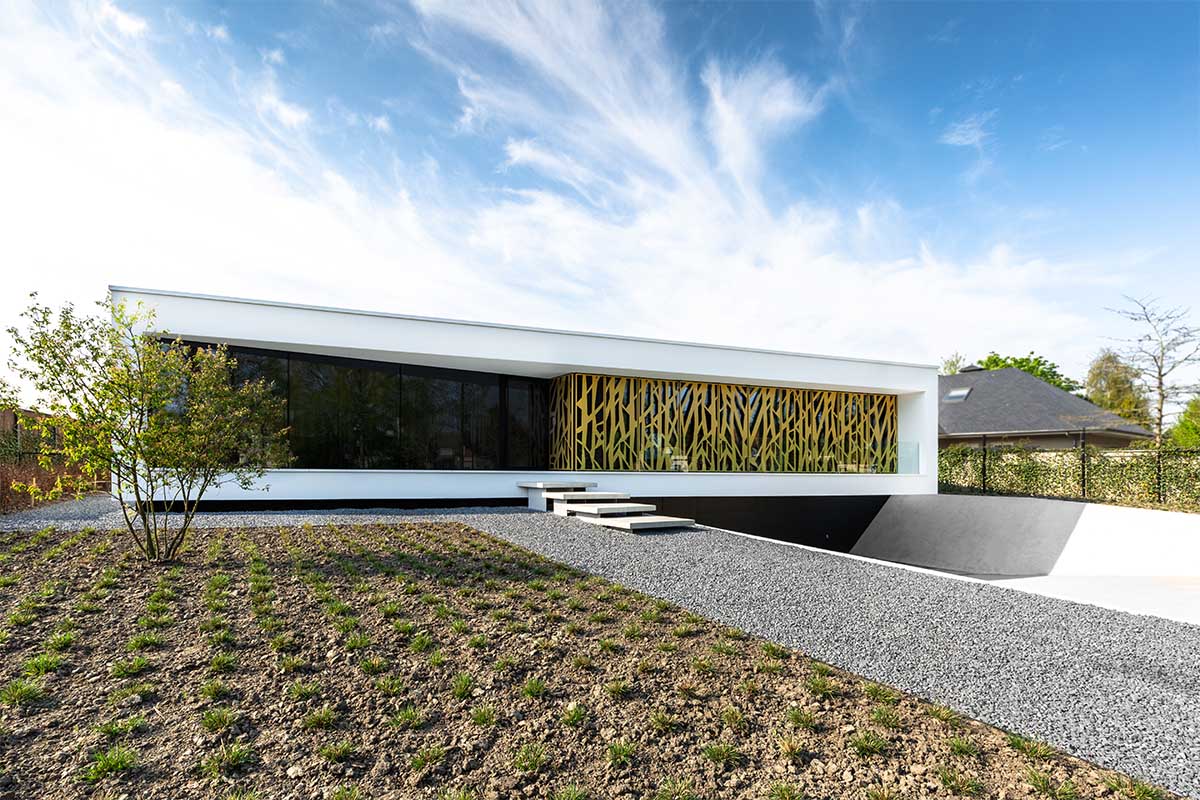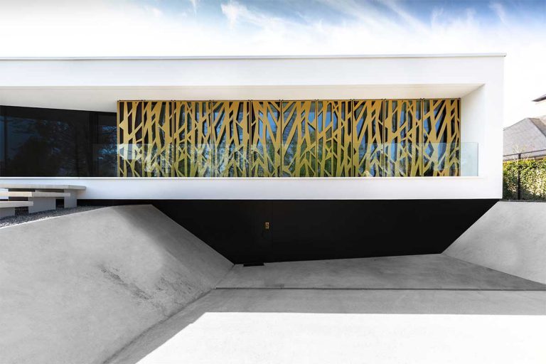 In Zeeland staat deze zeer bijzondere en fraaie moderne villa, voorzien van een zwarte trespa sectionaaldeur. Different Doors realiseerde deze fraaie prachtige automatische garagedeur die bovendien onzichtbaar is verwerkt in de gevel. De Trespa is aangeleverd door de aannemer en vervolgens in de eigen werkplaats van Different Doors verwerkt tot een automatische garagedeur, die gelijk ligt met de wand en exact strookt met de gevelbekleding van de villa. Niet voor niets dingt dit huis mee voor “mooiste bouwwerk van Zeeland 2020”. En daar zijn wij met onze bijdrage uiteraard trots op.